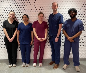 (left to right: Noelle Ellingsen, Niveditha Iyengar, Zoe Niezyiecki, Dr. JP Swigart and Tarun Gopinath)